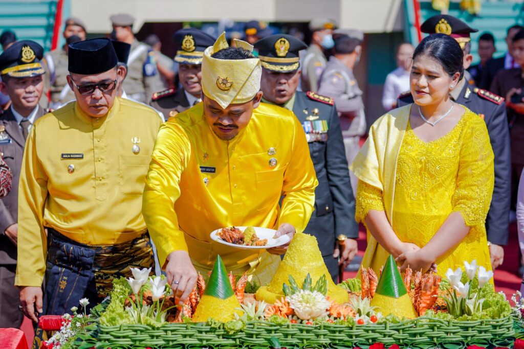 Dalam upacara yang juga dihadiri Wakil Wali Kota H Aulia Rachman, Ketua DPRD Medan Hasyim SE, unsur Forkompimda Kota Medan, Sekda Wiriya Alrahman, Ketua TP PKK Kota Medan Kahiyang Ayu, pimpinan OPD, Camat, Lurah dan kepala lingkungan, Bobby mengawali sambutannya dengan mengajak semua bersyukur. Sebab, kasus Covid-19 telah melandai sehingga peringatan HUT Kota Medan dapat dilaksanakan dengan meriah.