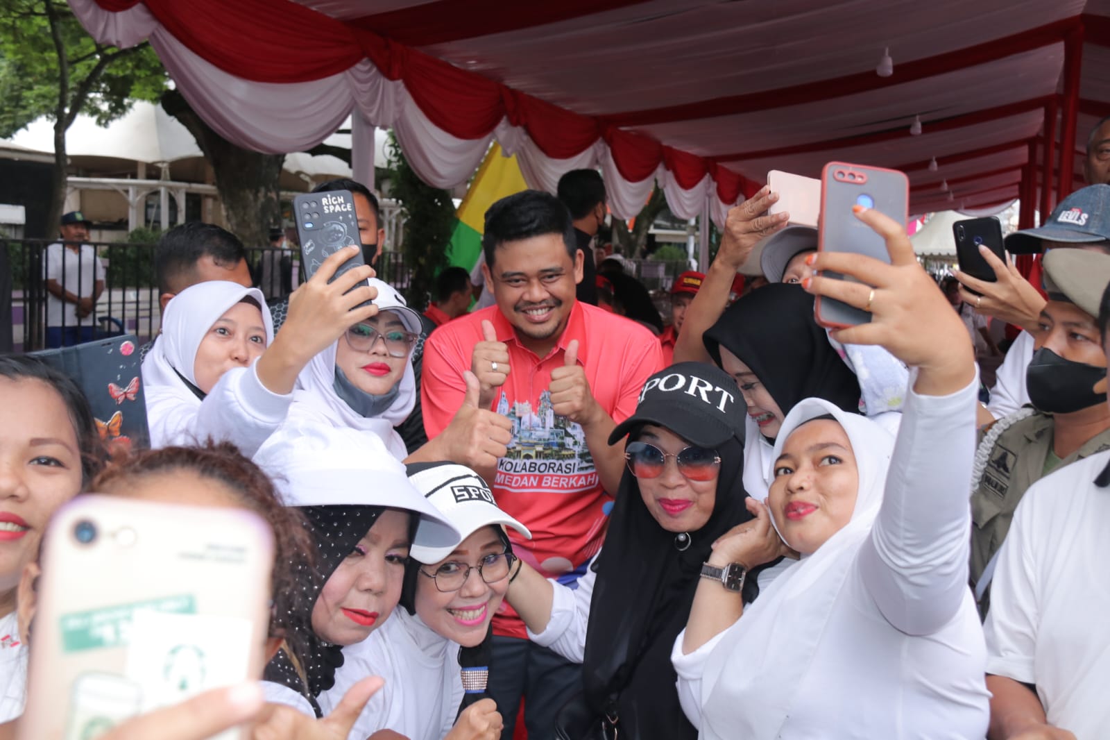 Sebelumnya, Bobby Nasution juga ikut senam kolaborasi bersama masyarakat yang hadir. Kemudian, menyerahkan hadiah kepada kecamatan pemenang lomba pawai budaya, fashion carnival dan senam kolaborasi. Usai itu, Bobby Nasution dan Aulia Rachman juga sempat bernyanyi bersama dengan membawakan lagu ‘Bento’.