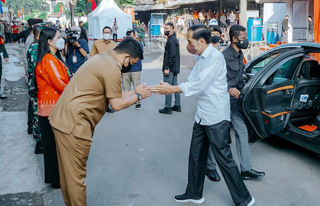 Dalam kunjungan kerjanya (kunker) ke Kota Medan, Presiden Joko Widodo didampingi Ibu Negara Iriana Joko Widodo mengunjungi dua pasar yakni Pasar Petisah dan Pusat Pasar Medan, Kamis (7/7). Selain membagikan sejumlah bantuan sosial (bansos) antara lain berupa Bantuan Modal Kerja (BMK) dan Bantuan Langsung Tunai (BLT) Minyak Goreng kepada masyarakat penerima manfaat dan pedagang, Presiden juga memberikan bantuan tunai kepada para pengendara becak bermotor.