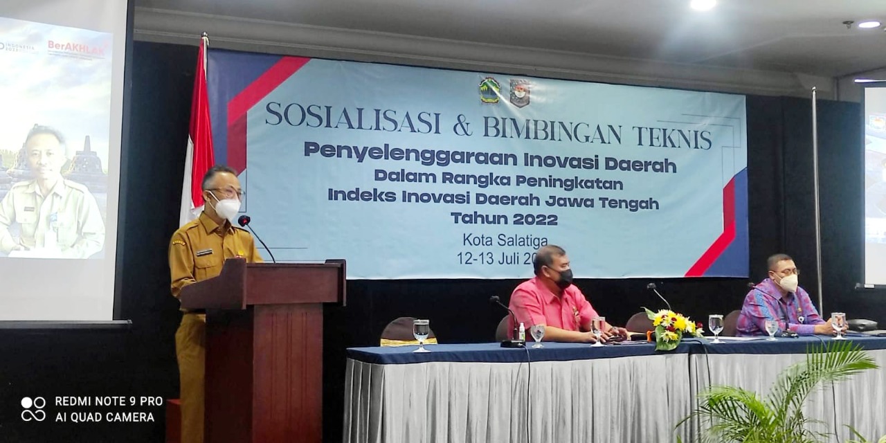 “Ini mari kita bangun, kita cermati, kita petakan, kita sandingkan dengan inovasi yang dilakukan provinsi, inovasi yang dilakukan oleh nasional. Bahkan kalau perlu internasional,” ujar Eko saat memberi arahan dalam forum Sosialisasi & Bimbingan Teknis (Bimtek) dengan tema “Penyelenggaraan Inovasi Daerah dalam rangka Peningkatan Indeks Inovasi Daerah Jawa Tengah Tahun 2022”, yang berlangsung di Kota Salatiga, Selasa (12/7/2022).