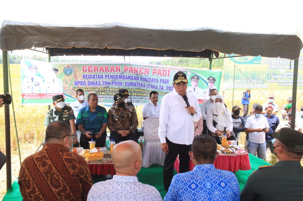 Pernyataan tersebut disampaikan oleh Wakil Bupati saat menemani Gubernur Sumatera Utara (Gubsu) Edy Rahmayadi, ikut dalam Gerakan Panen Padi dan Pengembangan Budidaya Padi APBD Dinas Tanaman Pangan dan Hortikultura Sumut Tahun 2022 di Desa Makmur, Kecamatan Teluk Mengkudu, Kamis (14/7/2022).
