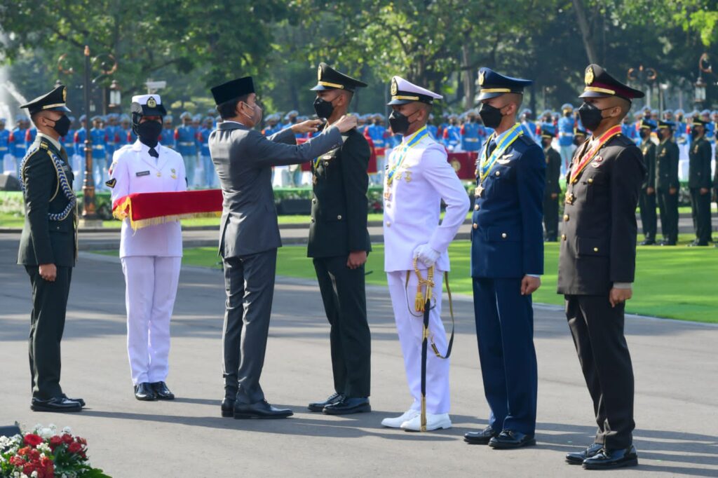 Global Cyber News.Com|Presiden Joko Widodo bertindak sebagai inspektur upacara dalam Prasetya Perwira (Praspa) TNI-Polri tahun 2022 yang digelar di halaman Istana Merdeka, Jakarta, pada Kamis, 14 Juli 2022. Dalam kesempatan tersebut, Kepala Negara melantik dan mengambil sumpah para calon perwira remaja (capaja) yang berjumlah 754 orang dari matra TNI dan Kepolisian.