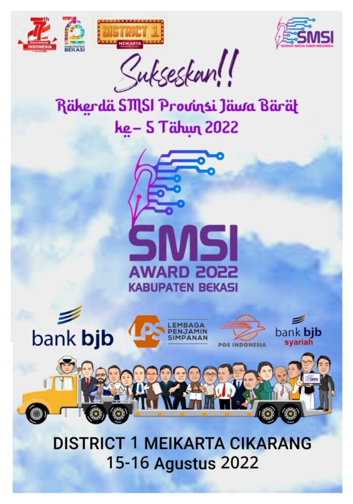 Global Cyber News.Com|BEKASI – Pelaksanaan Rapat Kerja Daerah Serikat Media Siber Indonesia (Rakerda SMSI) Provinsi Jawa Barat ke- 5 tahun 2022 akan digelar di Kabupaten Bekasi tanggal 15 dan 16 Agustus 2022 mendatang. SMSI Kabupaten Bekasi selaku tuan rumah memastikan tempat pelaksanaan di District 1 Meikarta Cikarang.