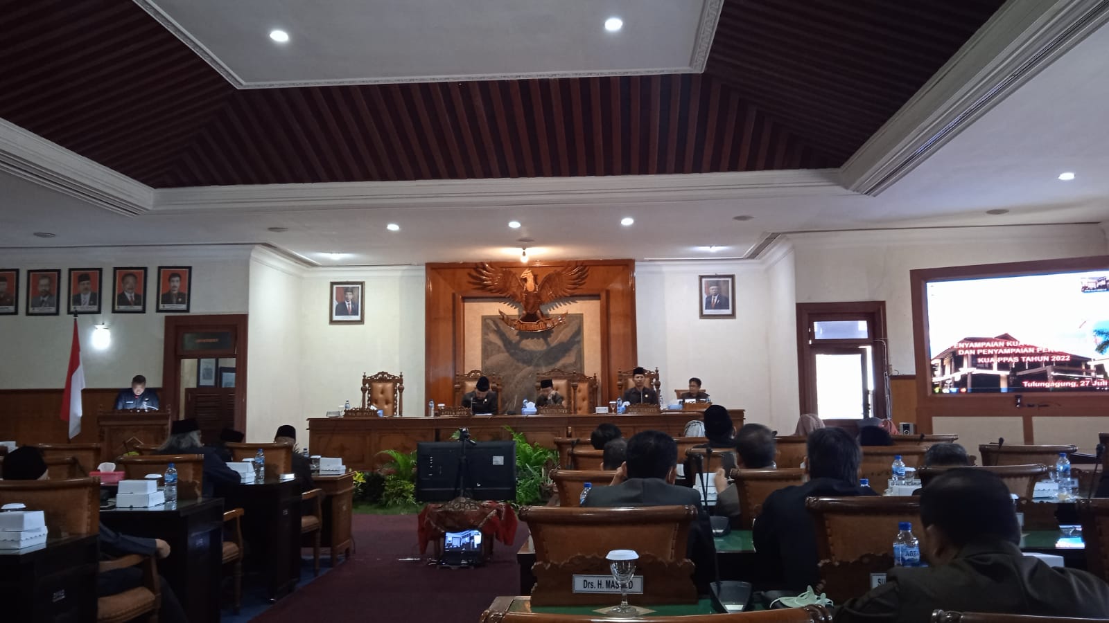 DPRD Kabupaten Tulungagung menggelar sidang paripurna diruang Graha Wicaksana dalam rangka penyampaian Rancangan Kebijakan Umum Anggaran dan Prioritas Plafon Anggara Sementara (KUA-PPAS) serta perubahan KUA-PPAS Tahun 2022 Tahun 2023 pada Rabu (27/07/2022).