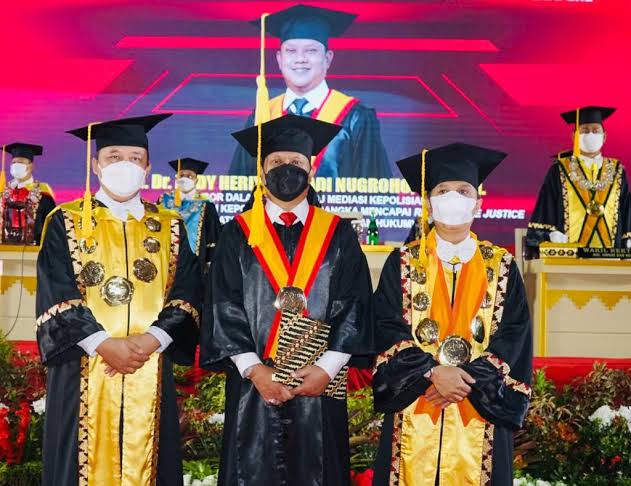Global Cyber News.Com|Lampung – Kapolda Banten Irjen Pol. Prof. Dr. Rudy Heriyanto Adi Nugroho, S.H., M.H terpilih secara aklamasi menjadi Ketua Ikatan Alumni Universitas Lampung (IKA-UNILA) masa bakti tahun 2022-2027. Jenderal Rudy yang pada 19 Februari 2022 lalu mendapat anugerah gelar Profesor bidang ilmu mediasi kepolisian itu mendapat dukungan 6 IKA Fakultas pada musyawarah besar (Mubes) ke-VII di UNILA pasa Sabtu (30/06) yaitu FH, FK, FT, FEB, FISIP, dan FMIPA. Selain itu Jenderal Rudy juga mendapat dukungan dari IKA UNILA di Banten dan Jabodetabek. “Sidang Mubes memutuskan aklamasi Jenderal Rudy sebagai Ketua Ikatan Keluarga Alumni UNILA yang baru, menggantikan Bapak HM Prasetyo yang masa baktinya berakhir pada tahun ini,” kata Abdulah Fadri Auli, pimpinan sidang Mubes ke-VII UNILA pada Sabtu (30/07).