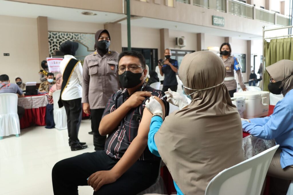 Dalam rangka percepatan vaksinasi Covid-19 di wilayah Kota Blitar, Polres Blitar Kota terus menggenjot pelaksanakan vaksinasi Dosis tiga (Booster). Sasaran vaksinasi Booster yang dilakukan Polres Blitar Kota pagi ini, Senin (01/08), bagi para Mahasiswa di Kampus Universitas Blitar (Unisba)