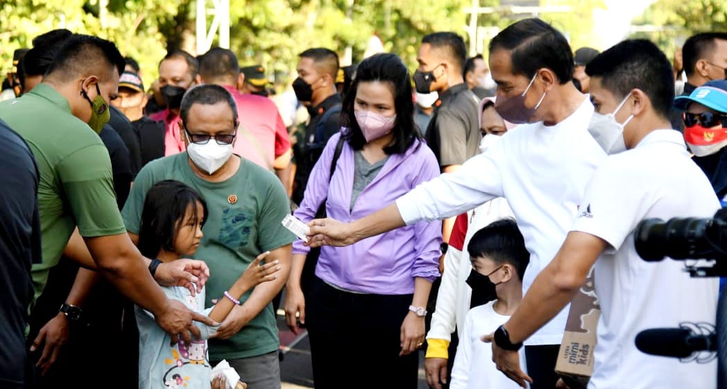 Global Cyber News.Com|Presiden Joko Widodo dan Ibu Iriana Joko Widodo menghabiskan waktu bersama cucunya, Jan Ethes Srinarendra, dengan berjalan santai di sepanjang Jalan Slamet Riyadi, Kota Surakarta, Minggu, 7 Agustus 2022. Jalan tersebut diketahui merupakan lokasi hari bebas kendaraan bermotor atau car free day (CFD) di Kota Surakarta.