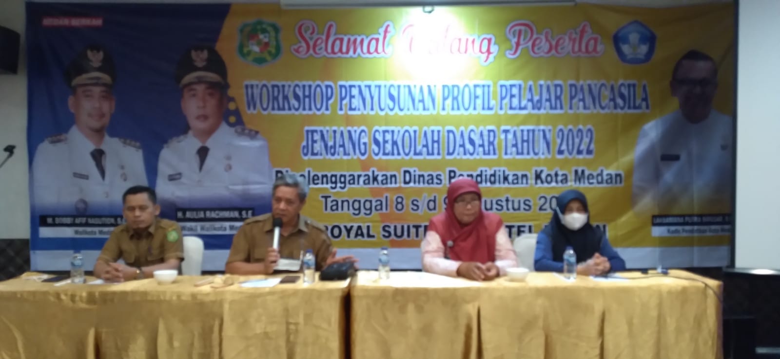 Dinas Pendidikan Medan mengadakan Workshop Penyusunan Profil Pelajar Pancasila Sekolah Penggcerak. Jenjang Sekolah Dasar, 8 sampai 9 Agustus di