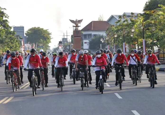 Global Cyber News.Com|Madiun, – Danrem 081/DSJ Kolonel Inf Deni Rejeki memeriahkan even Gowes Kemerdekaan dalam rangka memperingati HUT ke-77 Kemerdekaan Republik Indonesia di Kota Madiun.