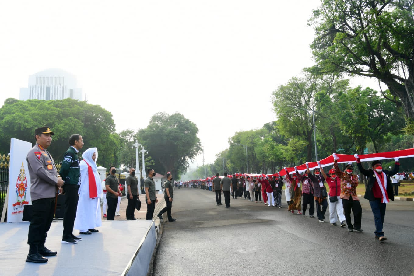 “Bersama-sama dengan Kapolri, bersama-sama dengan Habib Luthfi bin Yahya, dengan mengucap bismilillahirahmanirahim, pagi hari ini saya nyatakan Kirab Merah Putih diberangkatkan,” ucap Presiden.