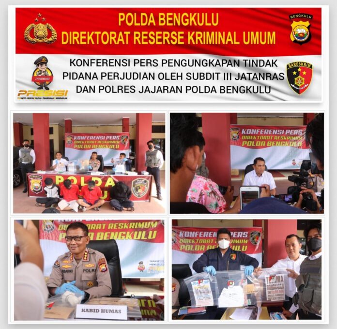 Global Cyber News.Com|Bengkulu – Sebanyak 28 kasus perjudian berbagai jenis dibongkar oleh Subdit III Jatanras Polda Bengkulu dan Polres Jajaran Polda Bengkulu, Senin, (29/08/202).