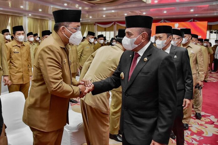 Global Cyber News.Com|-Medan I Gubernur Sumatera Utara (Sumut) melantik 123 pejabat Administrasi dan Pengawas di lingkungan Pemerintah Provinsi (Pemprov) Sumut, di Aula Tengku Rizal Nurdin, Rumah Dinas Gubernur, Jumat (2/9). Pelantikan ini sebagai bagian dari evaluasi kinerja dan loyalitas dalam rangka sinergitas organisasi.