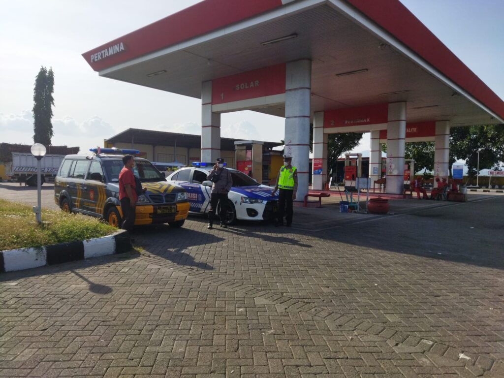 Harga BBM Naik, Polres Nganjuk Turunkan Personel Lakukan Pengamanan di Pom Bensin