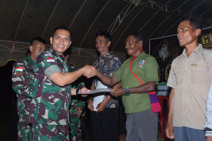 Dansatgas juga memberikan Piagam Penghargaan secara simbolis sebagai wujud Apresiasi kepada Aparat Pemerintahan, Tokoh Agama, Tokoh Masyarakat maupun Warga Perbatasan atas Kontribusi dan kerjasama yang dijalin selama Penugasan.