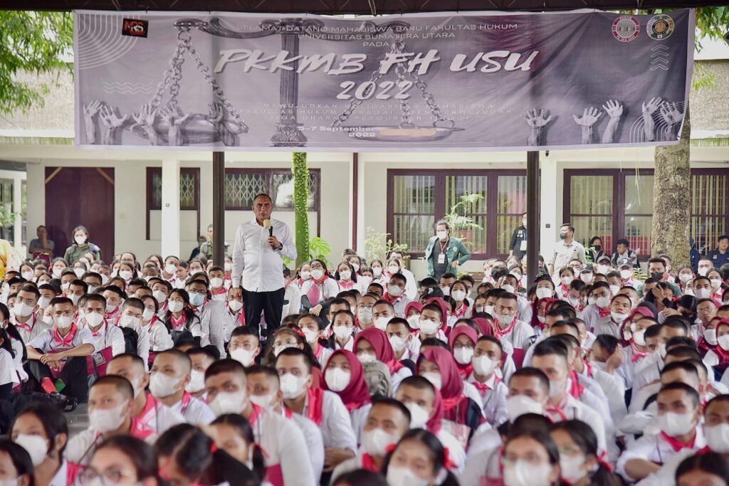 Global Cyber News.Com|-Medan I Gubernur Sumatera Utara (Sumut) Edy Rahmayadi memberikan tiga wejangan kepada mahasiswa baru Fakultas Hukum (FH) Universitas Sumatera Utara (USU). Wejangan yang disampaikannya di acara Pengenalan Kehidupan Kampus bagi Mahasiswa Baru (PKKMB) tersebut yaitu kejujuran, kasih sayang dan motivasi.