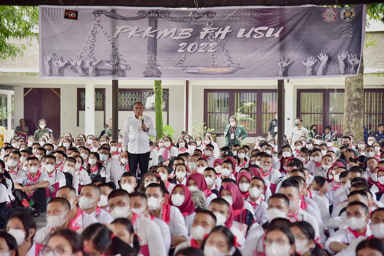 “Kalian mungkin jadi profesor, doktor, sarjana atau ahli hukum, tetapi kalau ketiga itu tidak ada, kalian akan malah merugikan orang lain,” kata Edy Rahmayadi, saat memberikan motivasi di hadapan sekitar 460 mahasiswa baru di Pendopo FH USU, Selasa (6/9).