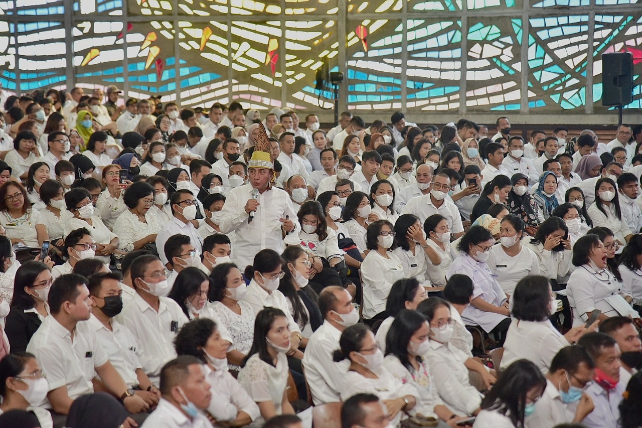 Global Cyber News.Com|-P.Siantar I Gubernur Sumatera Utara (Sumut) Edy Rahmayadi memotivasi ribuan guru SMA/SMK Kota Pematangsiantar, di Aula Kampus Universitas HKBP Nommensen, Jalan Sangnawaluh Nomor 4, Siopat Suhu, Pematangsiantar, Rabu (7/9). Diharapkan adanya perubahan di Kota Pematangsiantar yang merupakan salah satu kota wisata yang ada di Sumut.