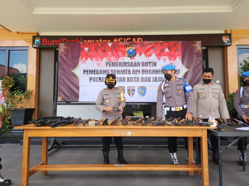 Kapolres Blitar Kota AKBP Argowiyono melalui kasihumas Iptu Achmad Rochan menjelaskan, pemeriksaan dan pengecekan senpi merupakan kegiatan yang dilaksanakan secara berkala.