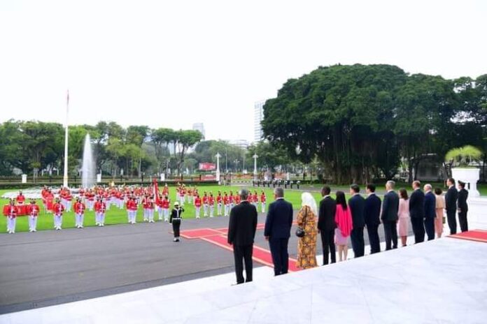 Turut hadir dalam kesempatan tersebut yaitu Menteri Luar Negeri Retno Marsudi, Sekretaris Kabinet Pramono Anung, Kepala Sekretariat Presiden Heru Budi Hartono, Sekretaris Militer Presiden Laksma TNI Hersan, serta Direktur Jenderal Protokol dan Konsuler Kementerian Luar Negeri/Kepala Protokol Negara, Andy Rachmianto.