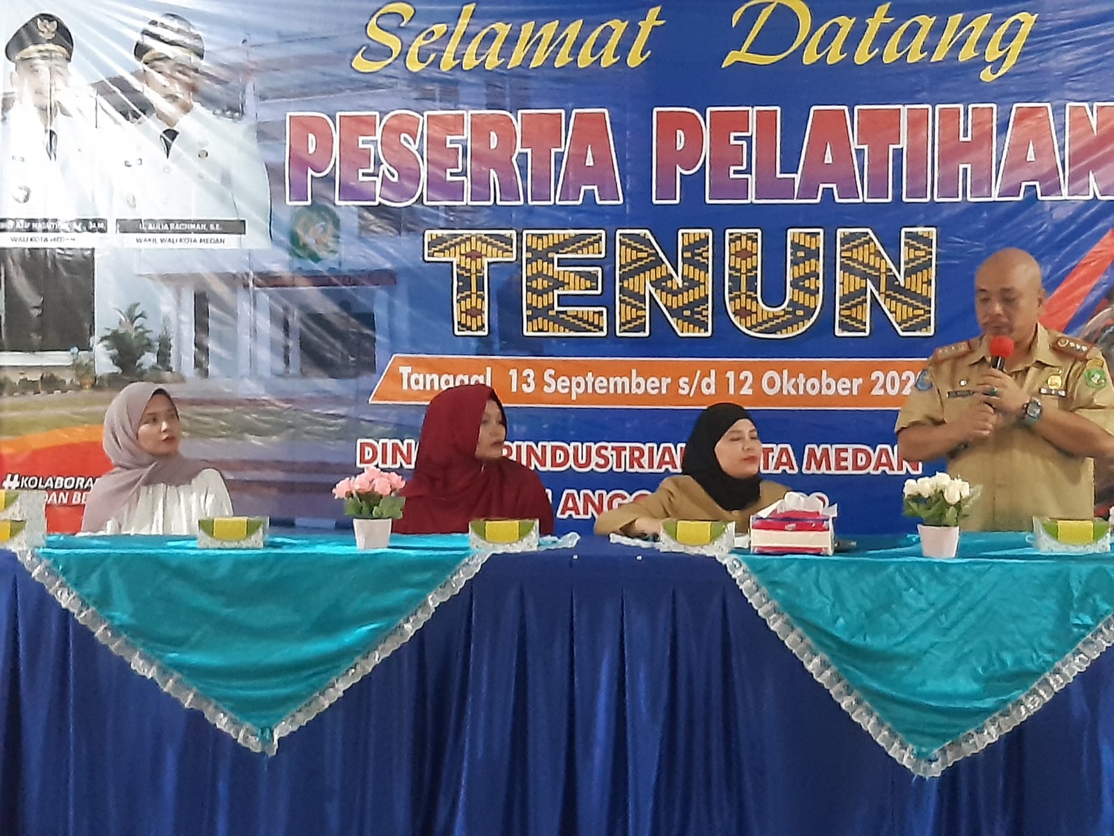 Pelatihan tenun yang digelar selama 25 hari ini dibuka oleh Wali Kota Medan Bobby Nasution diwakili Kabid Pembangunan Sumber Daya Industri, Dinas Perindustrian Kota Medan Linda Mora di Aula Kantor Camat Medan Perjuangan, Jalan Pendidikan, Selasa (13/9). Turut hadir dalam pembukaan pelatihan tenun, Camat Medan Perjuangan Zul Ahyudi Solin, Ketua Iwapi Medan, Ade Mora Nasution.