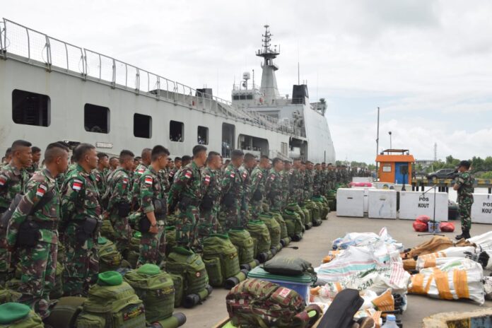 Global Cyber News.Com|Sebelum melakukan pelayaran dengan menggunakan KRI Banjarmasin dengan nomor lambung 592-1, Prajurit Yonif 123/Rajawali yang telah selesai melaksanakan tugas di wilayah Papua Bagian selatan melaksanakan embarkasi dan pemeriksaan oleh Staf Intel Korem 174/ATW, Polisi Militer beserta Instansi terkait.