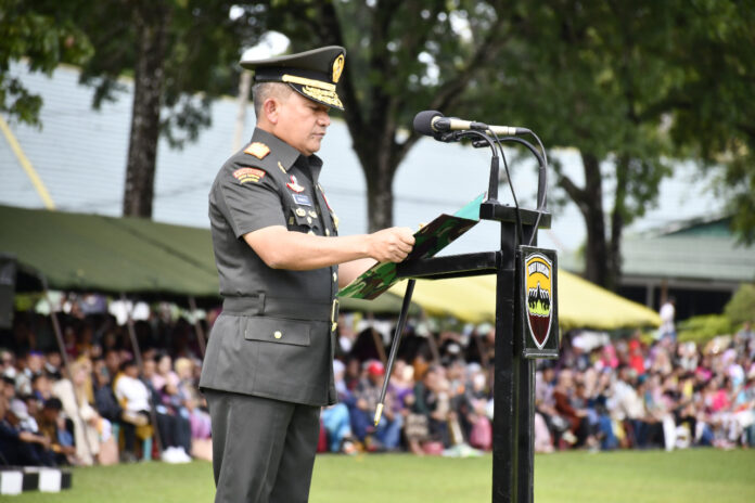 Global Cyber News.Com|Pematangsiantar – Pangdam I/BB, Mayjen TNI Achmad Daniel Chardin, SE, MSi, berpesan kepada Tamtama Remaja yang baru dilantik sebagai Prajurit Dua untuk menjadi Prajurit TNI AD yang profesional yang menjunjung tinggi Sapta Marga, Sumpah Prajurit dan Delapan Wajib TNI.