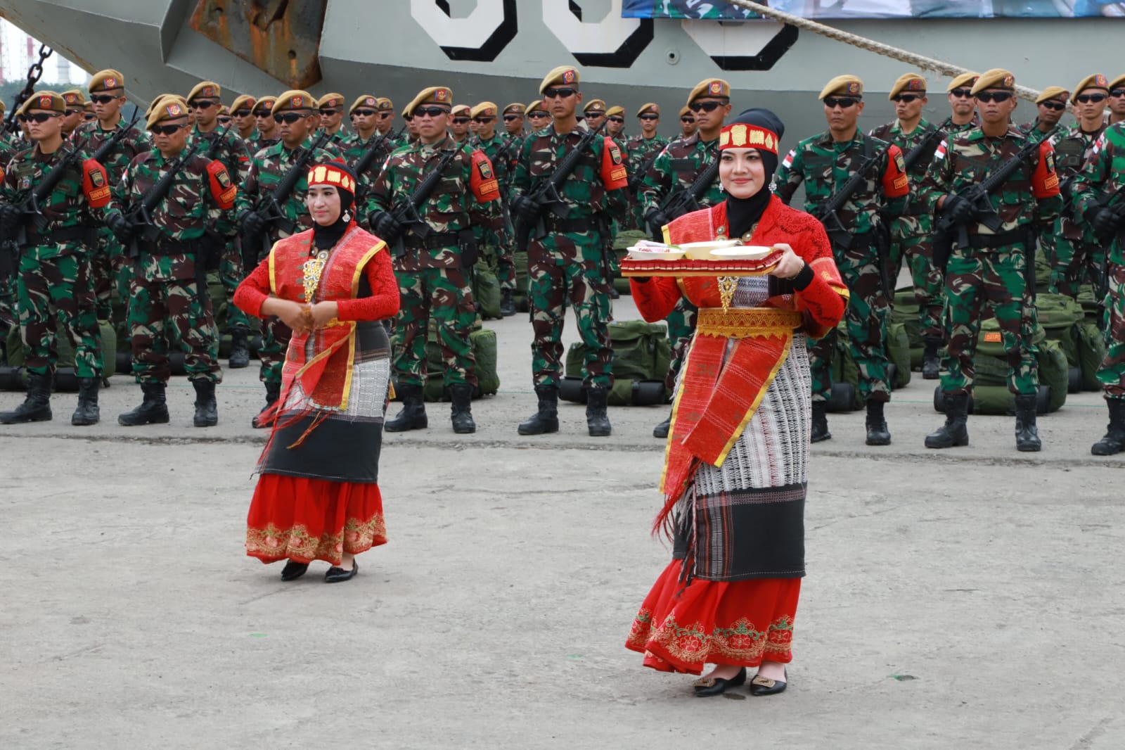 Turut hadir : Kasdam I/BB, Kapok Sahli, Danlantamal I Belawan, para PJU Kodam I/BB dan jajaran Polda Sumut, LO TNI AL, LO TNI AU, Wakil Wali Kota Medan, dan Ketua Persit KCK PD I/BB bersama jajaran pengurus.