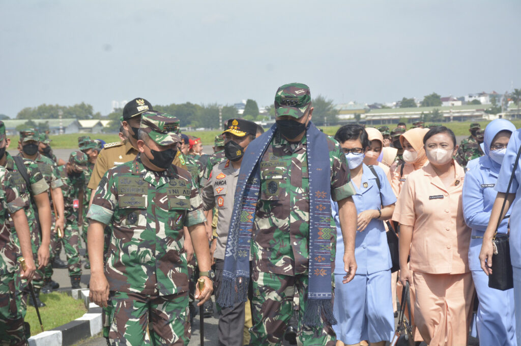 Kedatangan Jenderal berbintang empat menggunakan pesawat milik TNi AU yang tiba di Apron Chali Lanud Soewondo, sekira pukul 10.00 WIB ini turut didampingi oleh para pejabat tinggi TNi AU diantaranya, Asrena Kasau, Marsekal Muda TNI Dr.Ir Purwoko Aji Prabowo ,M.M.,M.D.S, Asintel Kasau, Marsekal Muda TNI, I Wayan Sulaba S.Sos.,M.Sc, Asops Kasau, Marsekal Muda TNI M. Khairil Lubis, Aslog Kasau, Marsekal Muda TNI, M. Fadjar Sumariji M.Sc, Aspirdirga Kasau, Marsekal Muda TNI, Bowo Budianto CHRMP, Askomlek Kasau, Marsekal Muda TNI Dr Amrizal Mansur M.Si ( Han ) dan Pangkoopsud I serta para petinggi lainya.