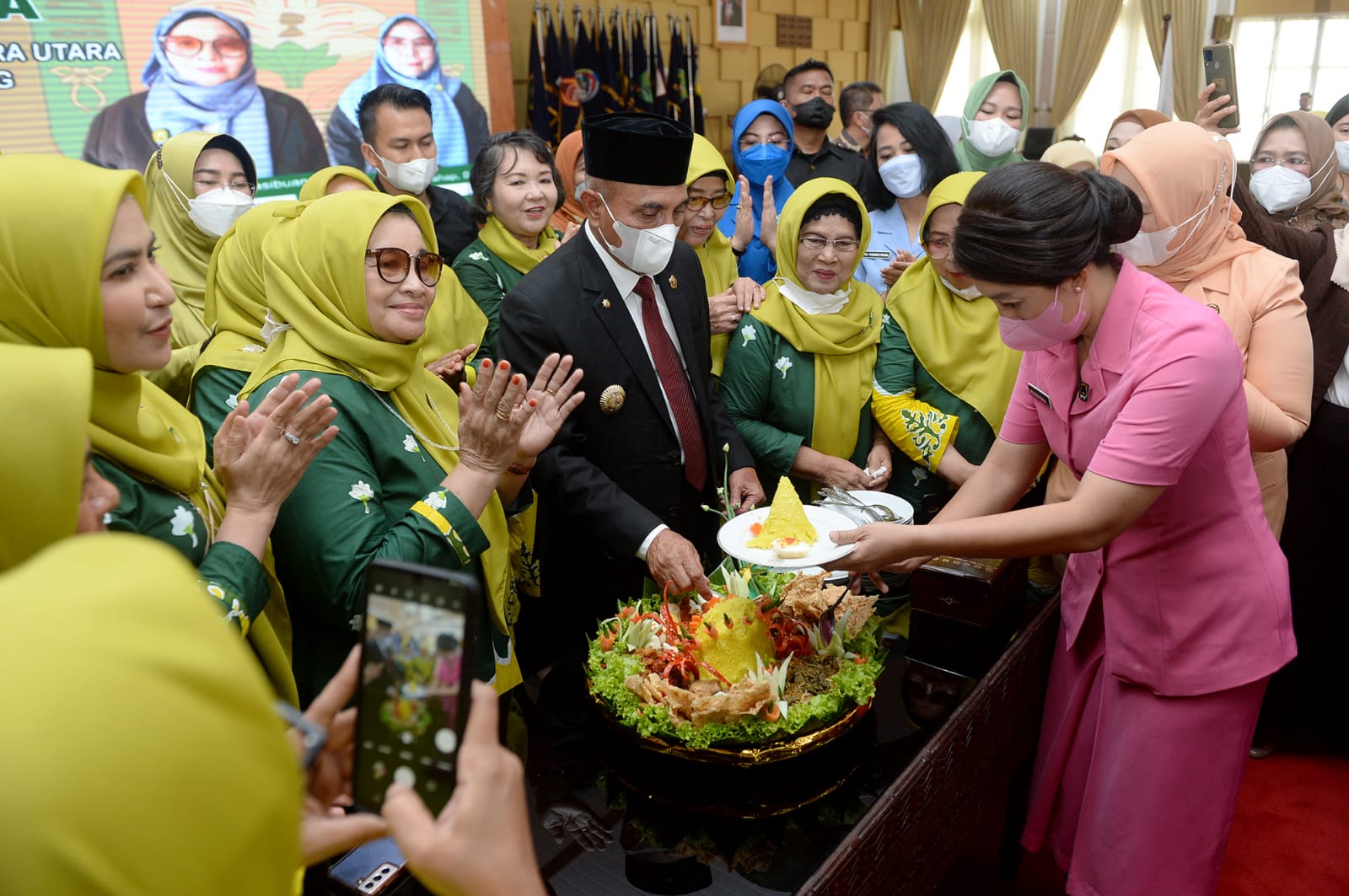Hal ini disampaikan Gubernur Edy Rahmayadi saat menghadiri Peringatan Hari Ulang Tahun (HUT) ke-52 BKOW Sumut di Aula Tengku Rizal Nurdin, Jalan Jenderal Sudirman Nomor 41 Medan, Kamis (20/10). Hadir di antaranya, Ketua BKOW Sumut Fahrizar Iskandar Hasibuan, Ketua Bhayangkari Sumut Rita Panca Putra, Ketua DWP Sumut Linda Fauziah, OPD Sumut, serta pengurus BKOW Sumut.