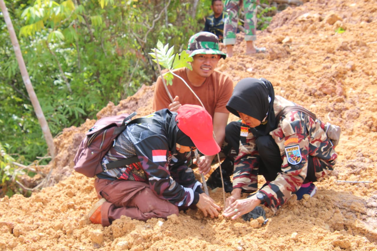 Penanaman pohon yang dilakukan melindungi tanah, khususnya jalan baru TMMD, serta upaya untuk menghentikan erosi sebagai upaya reboisasi upaya penanganan lingkungan.