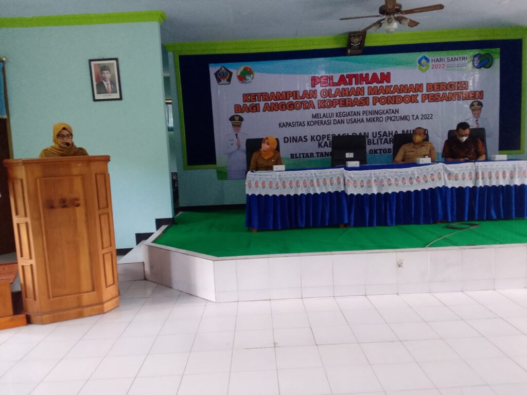 Pemerintah Kabupaten Blitar melalui Dinas Koperasi dan Usaha Mikro menggelar pelatihan keterampilan olahan makanan bergizi bagi anggota Koperasi pondok pesantren. Kegiatan tersebut diikuti oleh 130 peserta yang bertempat di gedung LEC Garum Kabupaten Blitar pada Selasa, (25/10/2022).