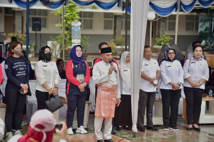 Global Cyber News.Com|-Medan I Gubernur Sumatera Utara (Sumut) Edy Rahmayadi memberikan tablet penambah darah kepada para remaja putri di SMA Negeri 1 Medan dalam rangka upaya pencegahan stunting sejak dini bagi perempuan calon ibu, di halaman di SMA Negeri 1 Medan, Jalan Teuku Cik Ditiro, Medan, Rabu (26/10).