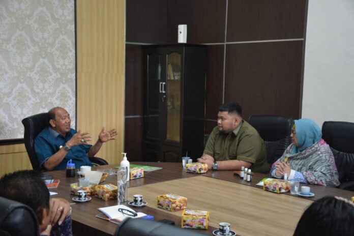 Pelaksana Tugas (Plt) Bupati Langkat H Syah Afandin SH menerima audiensi Dosen Fakultas Kesehatan Masyarakat (FKM) USU, serta Kepala Kantor BPJS Ketenagakerjaan Kabupaten Langkat, di Kantor Bupati Langkat, Stabat, Kamis (27/10/2022).