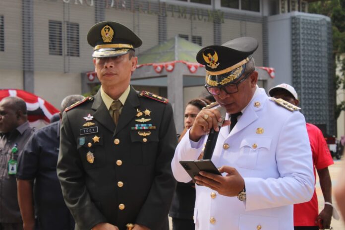 Global Cyber News.Com|Sorong Papua barat – Komandan Kodim 1802/Sorong Letkol Inf Tody Imansyah melaksanakan Upacara Hari Tahun Sumpah Pemuda Ke-94 Tahun, yang mengambil tema bersatu bangun bangsa, bertempat di lapangan apel kantor walikota sorong. Jumat, (28/10/2022)