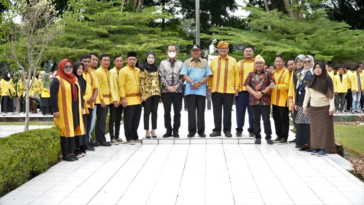 Plt Bupati Langkat H Syah Afandin SH melepas 800 peserta Kuliah Kerja Nyata (KKN)Tematik Mahasiswa Universitas Panca Budi (UNPAB), di Halaman Kantor Bupati Langkat, Stabat, Kamis (3/11/2022).