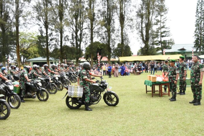 Pangdam menambahkan, bakti sosial ini bertujuan untuk meningkatkan kemanunggalan TNI dan Rakyat. “Bantuan yang diberikan berupa paket sembako, sunat massal , pengobatan mata, THT dan lain sebagainya ,”jelasnya.