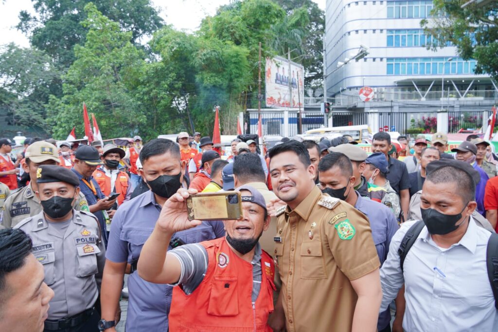 Dengan penuh empati, Wali Kota Medan Bobby Nasution menerima aksi damai  puluhan pengemudi becak bermotor (betor) yang tergabung dalam Dewan Pimpinan Pusat Solidaritas Angkutan Transportasi Umum Becak Bermotor di depan Balai Kota Medan, Selasa (24/1). Kedatangan mereka terkait dengan peremajaan betor dan bantuan untuk UMKM.