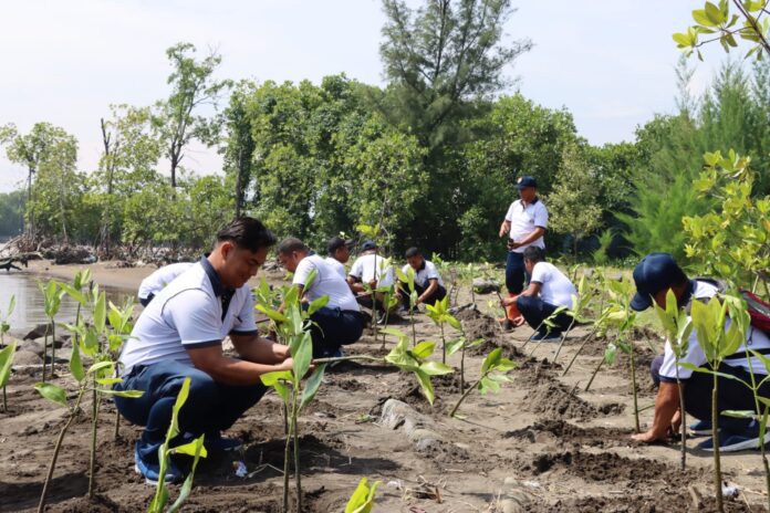 Global Cyber News.Com|Dalam rangka menyambut dan memperingati hari jadi ke-60 Pangkalan TNI Angkatan Laut (Lanal) Tegal dan sekaligus memperingati Hari Sampah Nasional, Lanal Tegal menggandeng Jajaran Forkopimda Tegal melaksanakan Apel bersama yang dilanjutkan dengan penanaman ribuan pohon mangrove di Pantai Pulau Kodok Mintaragen, Kota Tegal. Rabu (01/03/23).