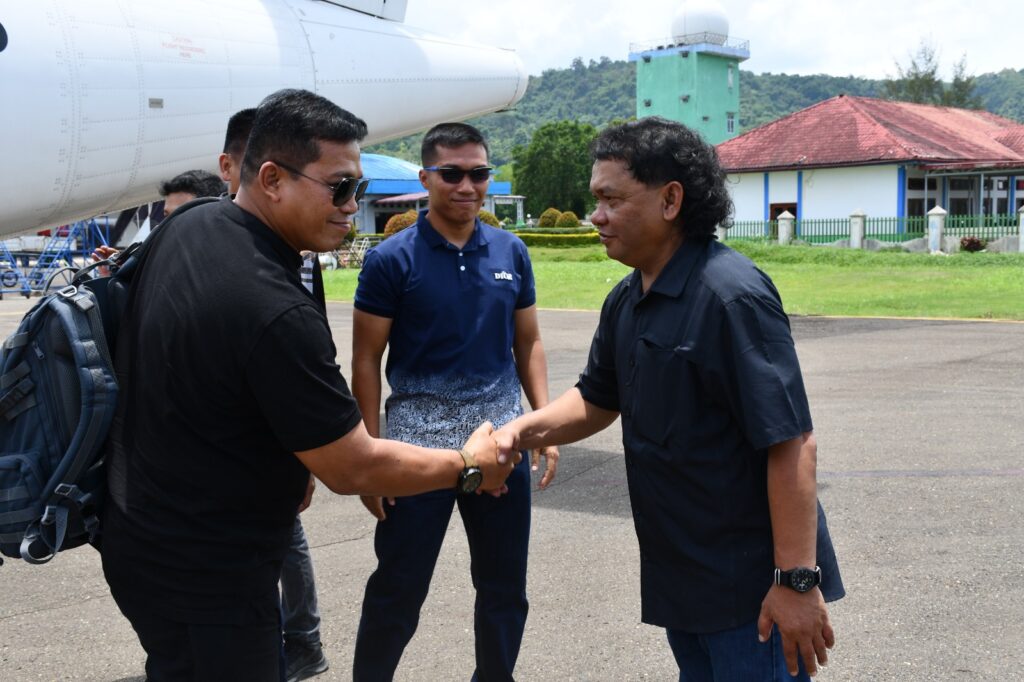 Tiba di Bandara Gunungsitoli Danrem dan rombongan disambut Dandim 0123/Nias Letkol Inf Martky Jaya Perangin Angin,