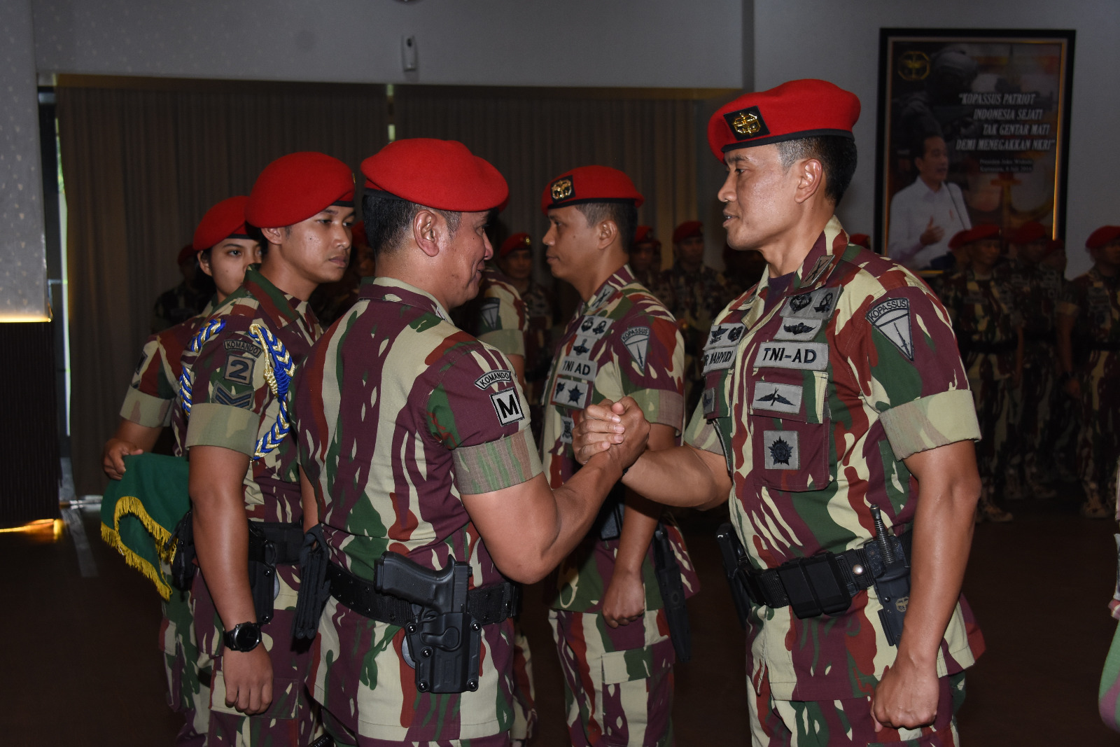 Sebanyak tujuh perwira Korps Baret Merah menerima kenaikan pangkat, dan jabatan baru yaitu Letkol Inf Langgeng Pujut Santoso, S.E., M.Han, lalu 6 Pamen Kopassus yang resmi dinaikkan pangkatnya satu tingkat lebih tinggi dengan jabatan barunya yaitu Kolonel Czi Bayu Kurniawan, S.E., Letkol Cpl Andi Edwin Mufianto, S.E., Letkol Inf Farid Yudho Dwi Laksono, Letkol Inf Wahyo Yuniartoto, S.E., M.Tr. (Han)., Letkol Inf Nurwahyudi, S.E., M.I.Pol., Letkol Inf Ginda Muhamad Ginanjar.