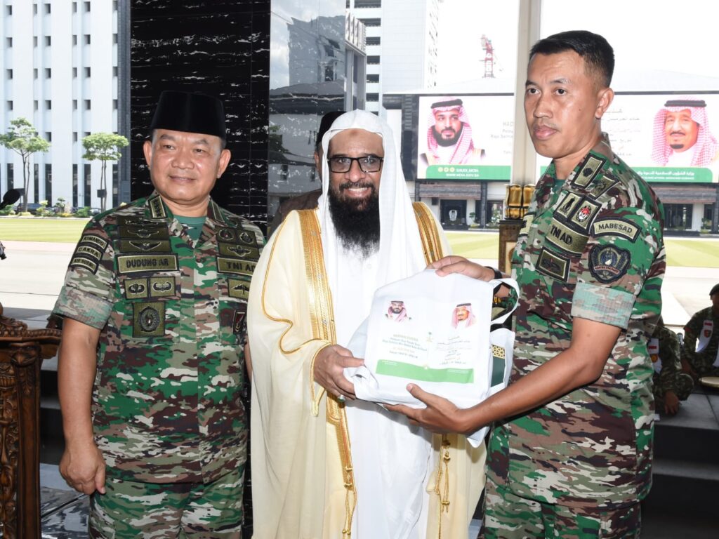 “Tujuan kami datang ke Markas Besar Angkatan Darat untuk menyampaikan hadiah dari Pemerintah Kerajaan Arab Saudi berupa paket buka puasa dan Mushaf Al Qur’an, untuk diberikan kepada para prajurit,” tuturnya.