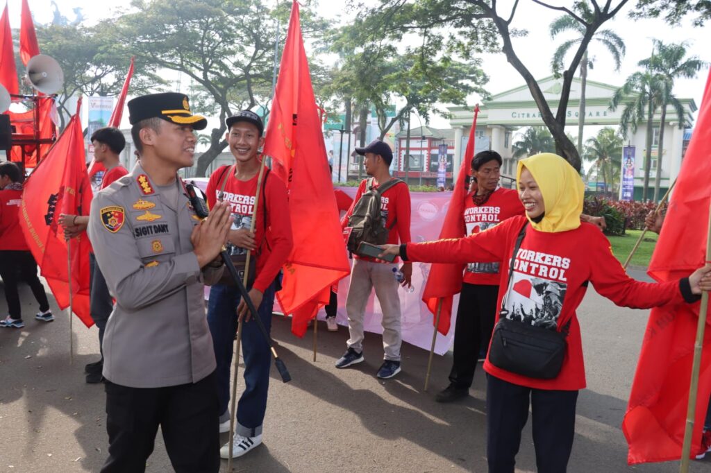 Global Cyber News.Com|Aparat Polresta Tangerang Polda Banten menerjunkan sedikitnya 300 personel gabungan untuk mengawal keberangkatan massa buruh menuju Jakarta, Senin (1/5/2023). Massa buruh sedianya akan melaksanakan aksi peringatan May Day atau Hari Buruh Internasional.