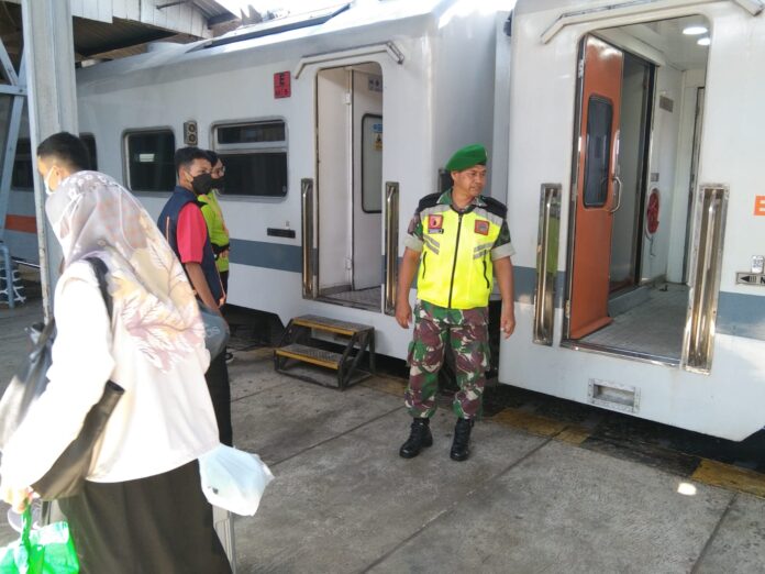 Global Cyber News.Com|Blitar – Anggota Koramil 0808/01 Sukorejo Kodim 0808/Blitar bersama petugas gabungan selalu bersinergi untuk melaksanakan kegiatan pengamanan dan pengecekan di stasiun kereta api Jl.Mastrip Kel/Kec.Kepanjenkidul Kota Blitar, Minggu (1/5/2023).