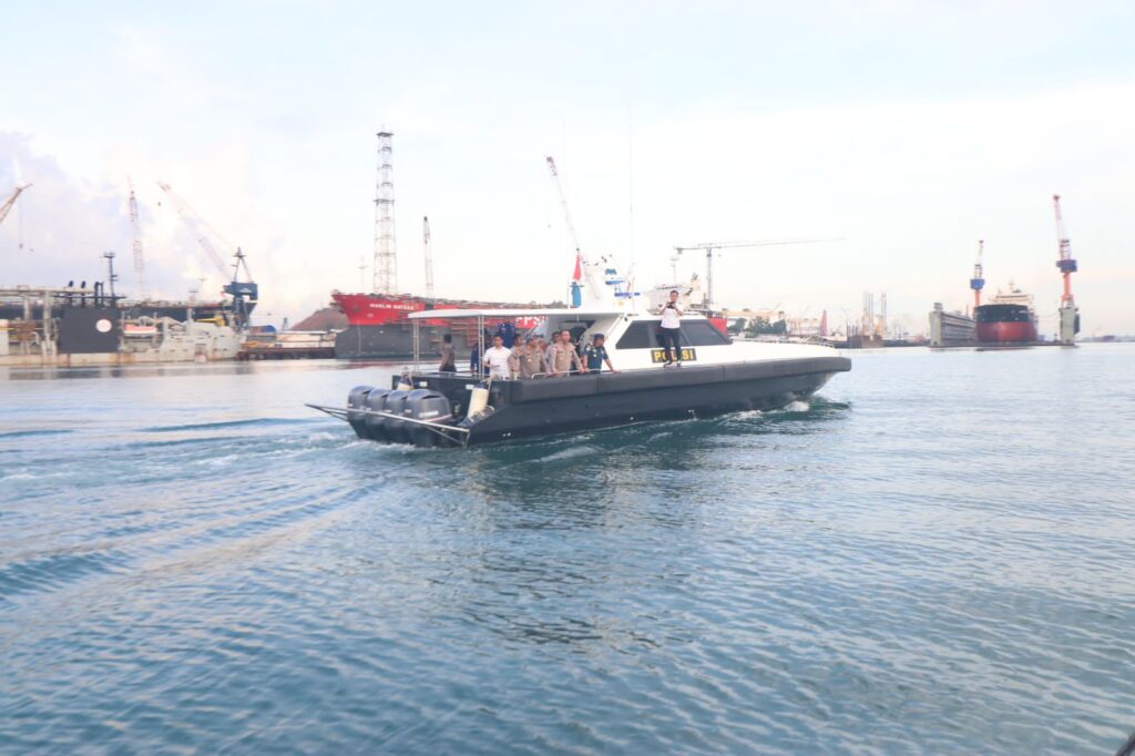 Global Cyber News.Com-Batam – Dirpolairud Polda Kepri didampingi oleh Karoops Polda Kepri dan KSOP Provinsi Kepri melaksanakan patroli menggunakan Kapal KP-XXXI-2007 dan penyelidikan guna memantau minyak yang tumpah di perairan Nongsa. Kamis (04/05/2023).