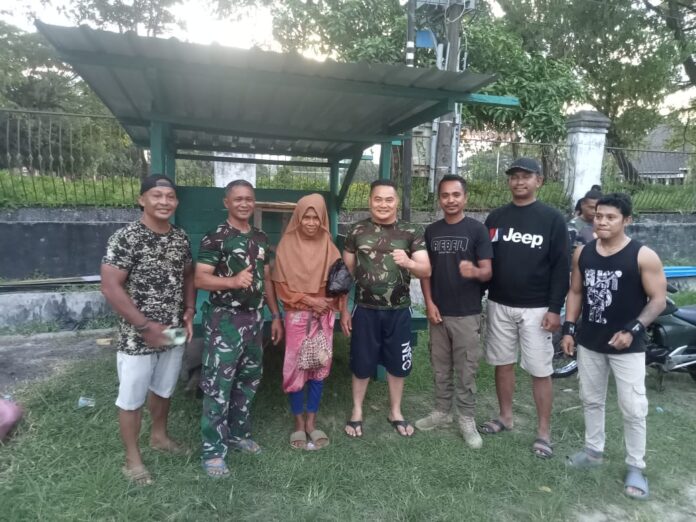 Global Cyber News.Com|Muna–Personel Kodim 1416/Muna membantu warga membangun dari Nol/Awal tempat penjualan Pedagang Kaki Lima Wanita Lansia penjual kelapa muda yang tidak layak, yang Dipimpin oleh Komandan Kodim 1416 Muna, Letkol INF Gilles R.B Hogendorp, S.I.P bertempat di depan Alun-Alun Kota Raha Kab. Muna, (24/5/2023).
