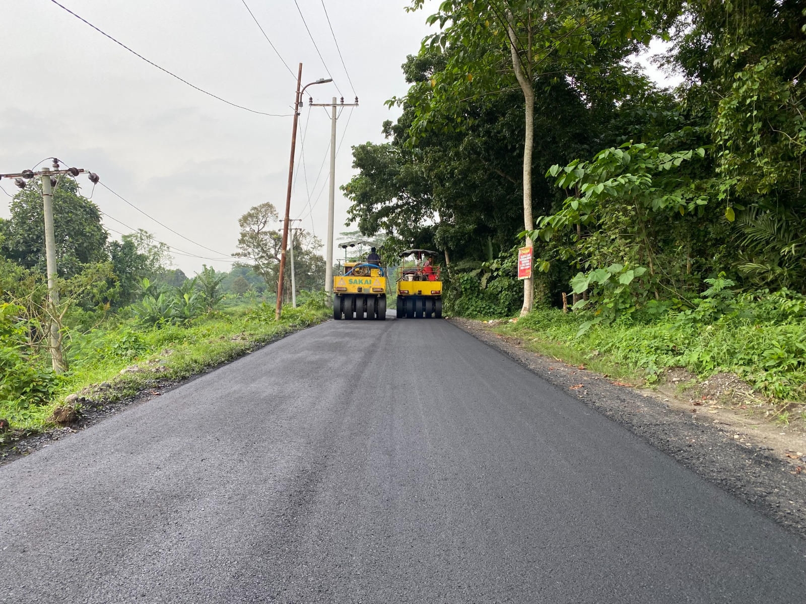 “Setelah kita lakukan pelebaran, baru kita aspal menggunakan finisher set sepanjang 1091 meter dengan lebar 4 sampai 6 meter.”kata Topan Obaja Putra Ginting.