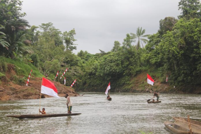 Global Cyber News.Com|Boven Digoel, 24 Juni 2023. Keterbatasan SDA maupun sarana dan prasarana di Kampung perbatasan Papua, bukan menjadi suatu halangan untuk masyarakat perbatasan, Satgas Pamtas Yonif 725/Wrg yang dibawah naungan Korem 174/ATW Pos Kombut yang bertugas di wilayah perbatasan Papua kembali menunjukkan kebersamaannya dengan mengadakan perlombaan dayung perahu yang diikuti oleh masyarakat setempat sebagai wujud solidaritas dan kebersamaan, serta menciptakan jiwa petarung untuk menjadi sang juara dalam menghadapi berbagai tantangan di wilayah Kampung Kombut, Distrik Kombut, Kab. Boven Digoel.