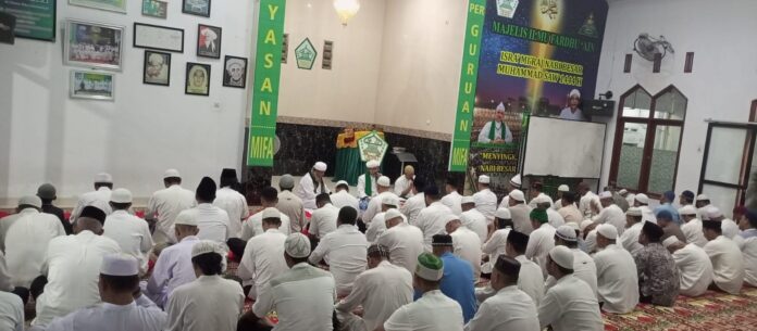 globalcybernews.com-Medan I Majelis Ilmu Fardhu ‘Ain (MIFA) menggelar acara haul Syaikh Ali Mas’ud Al Banjari ke 12, di surau Deli Tua, Rabu malam (4/7/2023). Acara haul tersebut dipimpin Ketua Dewan Pembina MIFA TGD, Prabu Kresna Erde. Dalam acara haul itu, TGD menceritakan biografi Syaikh Ali Mas’ud Al Banjari.