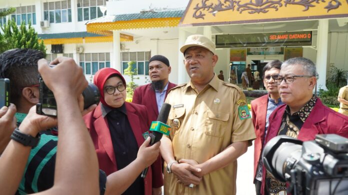 Pelaksana Tugas (Plt) Bupati Langkat H.Syah Afandin SH memimpin Apel Pelepasan KKN Tematik Mahasiswa Universitas Islam Sumatera Utara (UISU), bertempat di Halaman Kantor Bupati Langkat, Senin (24/7/2023).
