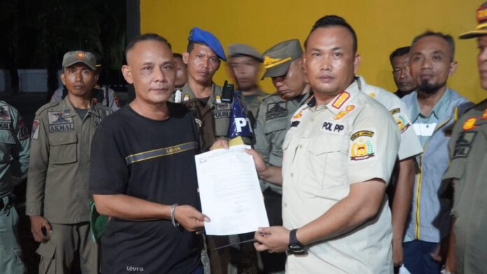 Tim yang di ketuai Kasat Pol PP Langkat Dameka Putra Singarimbun S.STP melakukan penyegelan bangunan agar tidak beroperasi serta membaca dan menyerahkan surat Himbauan penutupan sementara Diskotik One King Golden kepada pemilik.